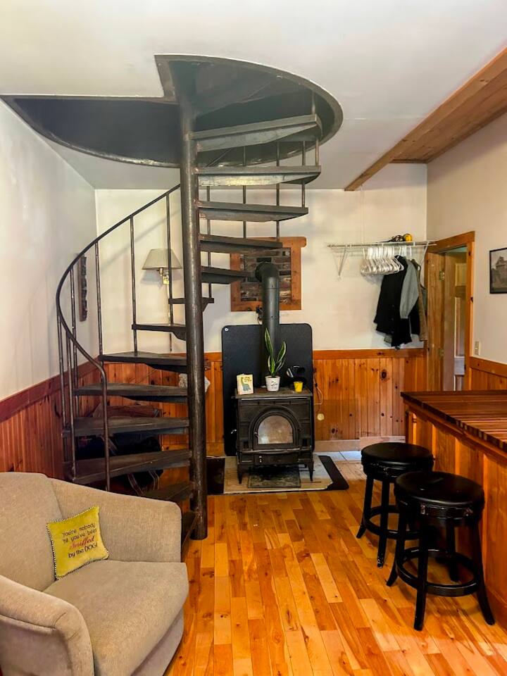 Charming apartment minutes from Jay Peak. Wood floors and highlights, spiral staircase and wood stove come together to create a bright and cozy space.